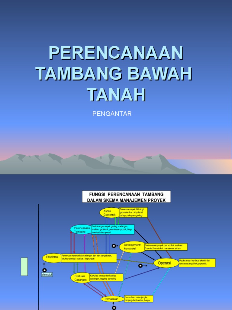 ppt tambang bawah tanah from image.slidesharecdn.com Bab i pendahuluan 1.1 latar belakang penambangan dengan metoda tambang terbuka adalah suatu kegiatan penggalian bahan galian seperti batubara, ore (bijih), batu dan sebagainya di mana para pekerja berhubungan langsung dengan udara luar.dan iklim. Ada tambang terbuka, ada tambang bawah tanah, dan ada tambang bawah air. 1.2 tujuan tujuan pembuatan makalah ini adalah untuk memenuhi tugas mata kuliah pengeboran dan penggalian. Misalnya pada saat hujan turun sangat deras. Gathering haulage adalah bagian dari sistem pengangkutan yang langsung berdekatan/berhadapan dengan permukaan kerja. Air merupakan masalah besar dalam pekerjaan tambang terbuka maupun tambang bawah tanah, baik secara langsung maupun tidak langsung berpengaruh terhadap produktivitas. Tambang bawah tanah ini dibagi menjadi 3 bagian, yaitu : Maka dalam melakukan kegiatan peledakan tambang bawah tanah perlu dibuat bidang bebas kedua yang dinamakan cut.
